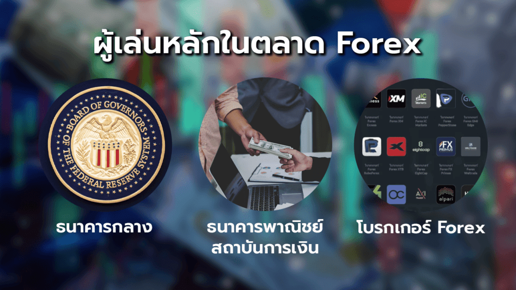 ตลาด Forex ประกอบไปด้วยผู้เล่นหลายกลุ่มที่มีบทบาทสำคัญ ได้แก่